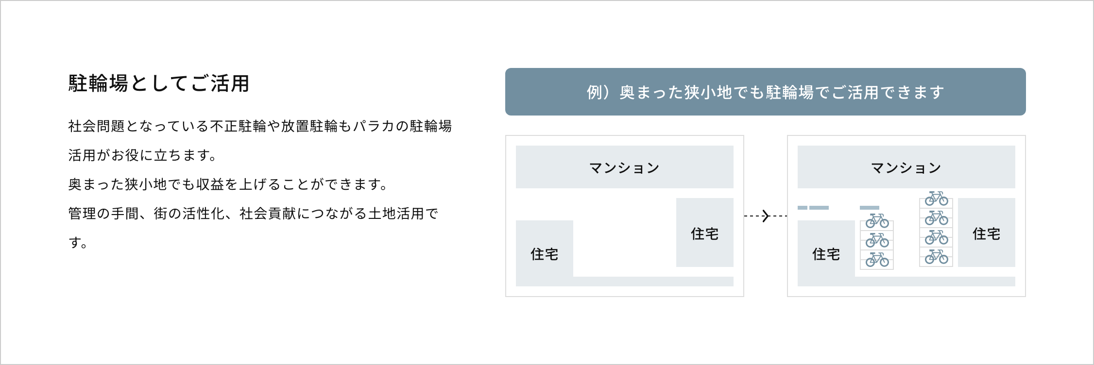 クルマだけでなく、自転車・バイクのコインパーキングも運営可能です。