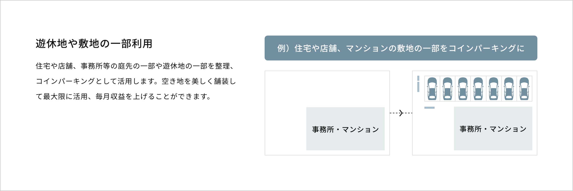 売上アップが、そのまま利益に直結します。駐車場の売上に応じて賃料を還元する方式です。当社とオーナー様が一体となり、パートナーシップを築きながら運営します。